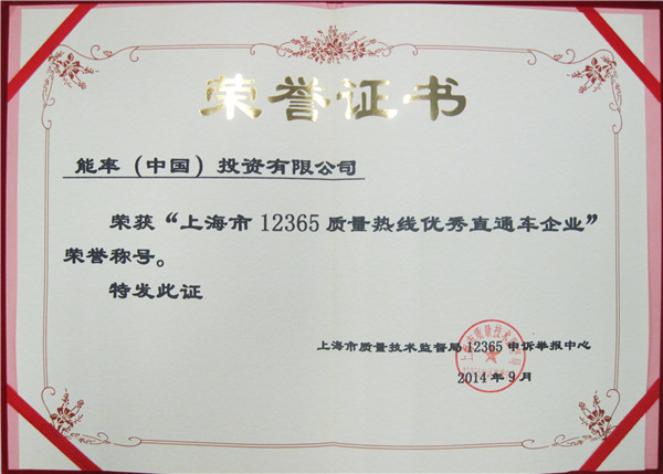 2014年上海市12365質(zhì)量熱線優(yōu)秀直通車企業(yè)