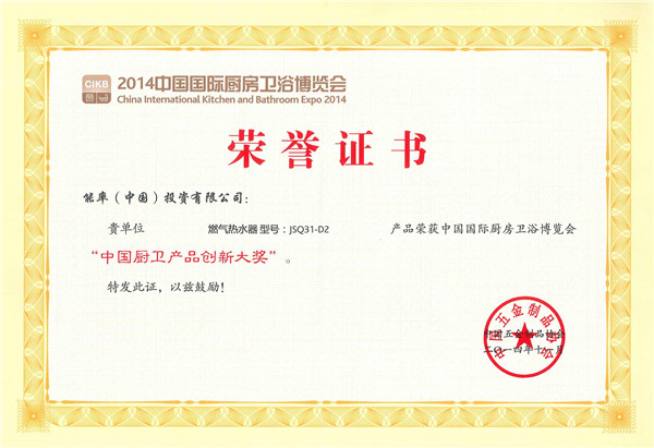 2014中國(guó)國(guó)際廚房衛(wèi)浴博覽會(huì) 中國(guó)廚衛(wèi)產(chǎn)品創(chuàng)新大獎(jiǎng)