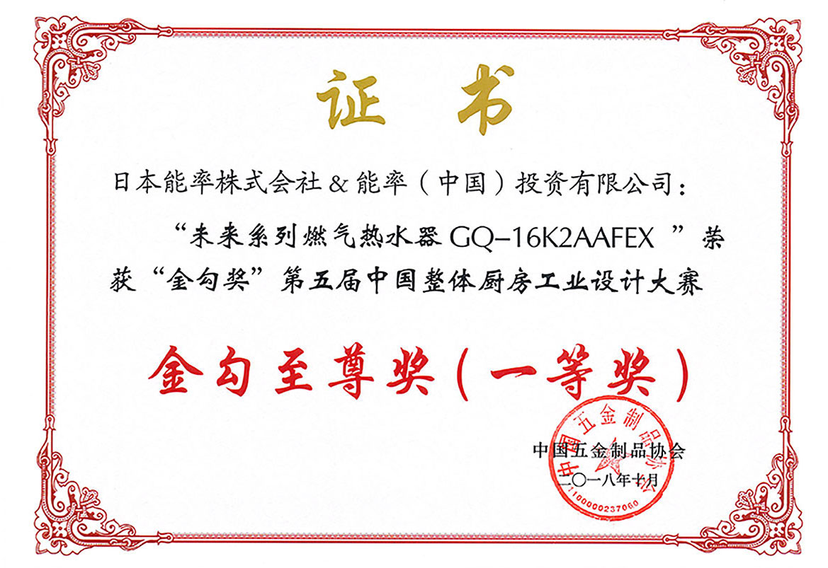 2018年第五屆中國整體廚房工業設計大賽金勾至尊獎(一等獎)