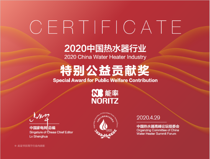 2020年中國熱水器行業特別公益貢獻獎