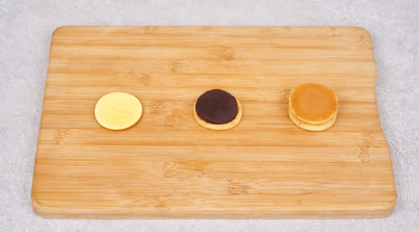 STEP 08取出后,將餅皮中間加上豆沙覆蓋另一張餅皮,即為銅鑼燒