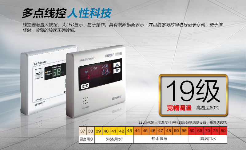 額定產(chǎn)熱水能力(水溫+40℃上升)(L/min):12T 20、LPG 20