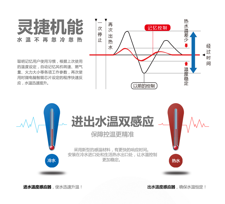 溫度控制方式:電子式燃?xì)獗壤刂品绞?水量伺服器控制方式