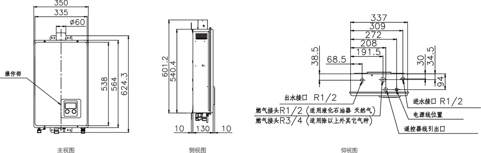 燃氣管:人工煤氣R3/4,天然氣R1/2