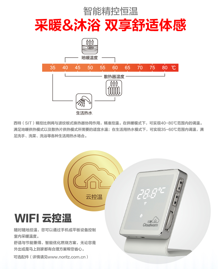 采暖/散熱片模式調(diào)節(jié)范圍:40-80℃