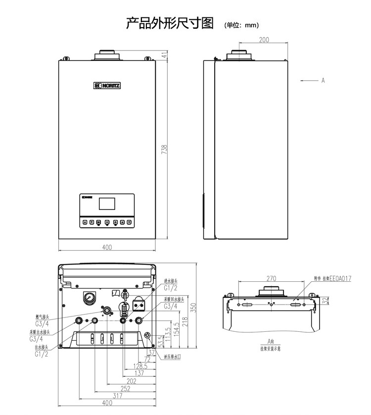 外形尺寸(mm):高738×寬400×深350