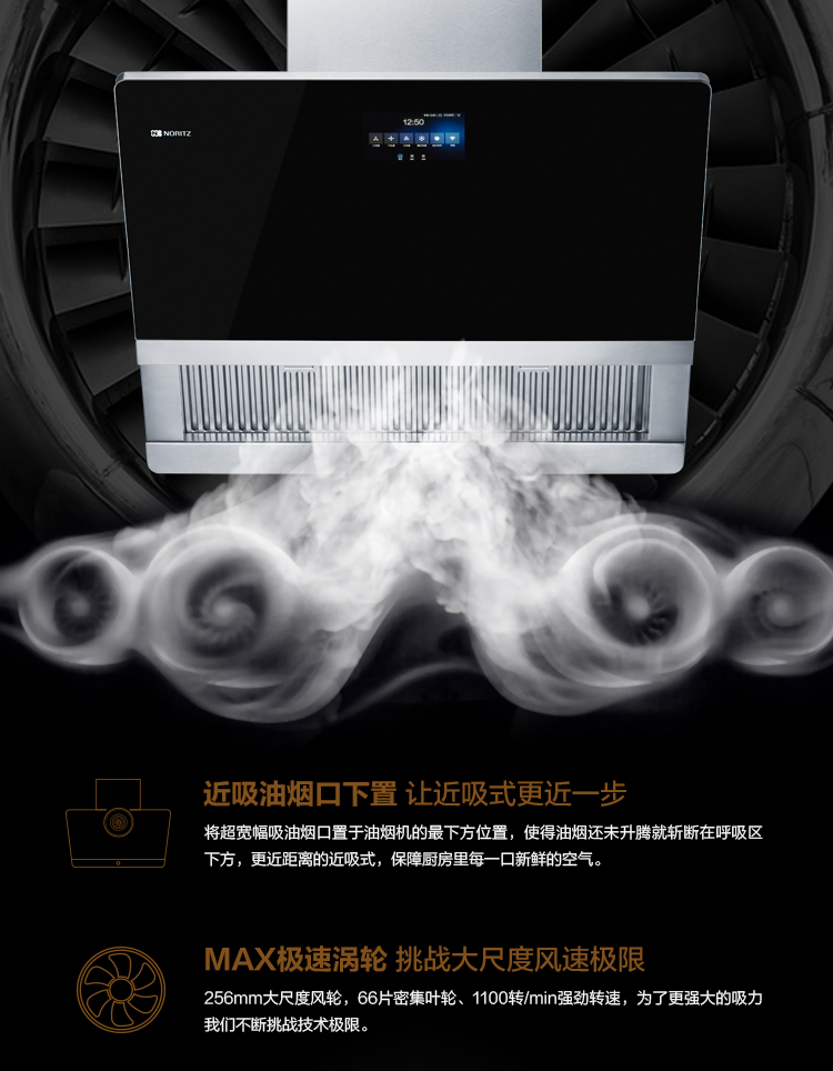 - 瞬時升檔強吸,從容應對爆炒油煙