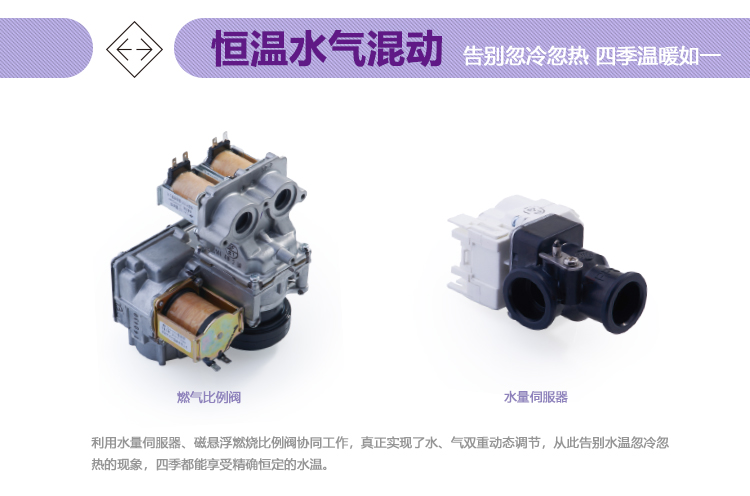 溫度控制方式:電子式燃氣比例控制方式+水量伺服器控制方式