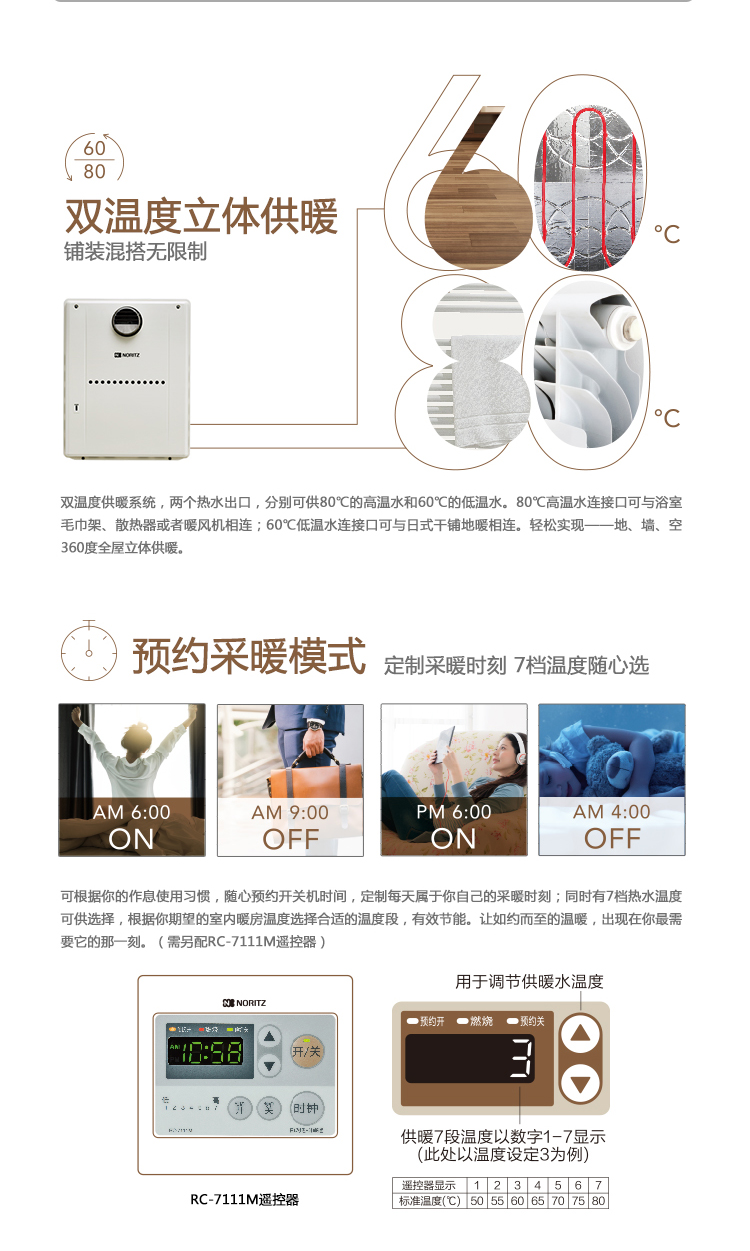 - 雙溫度立體供暖,定制采暖時刻,七檔溫度隨心選