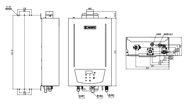 外形尺寸(mm):高570×寬364×深155