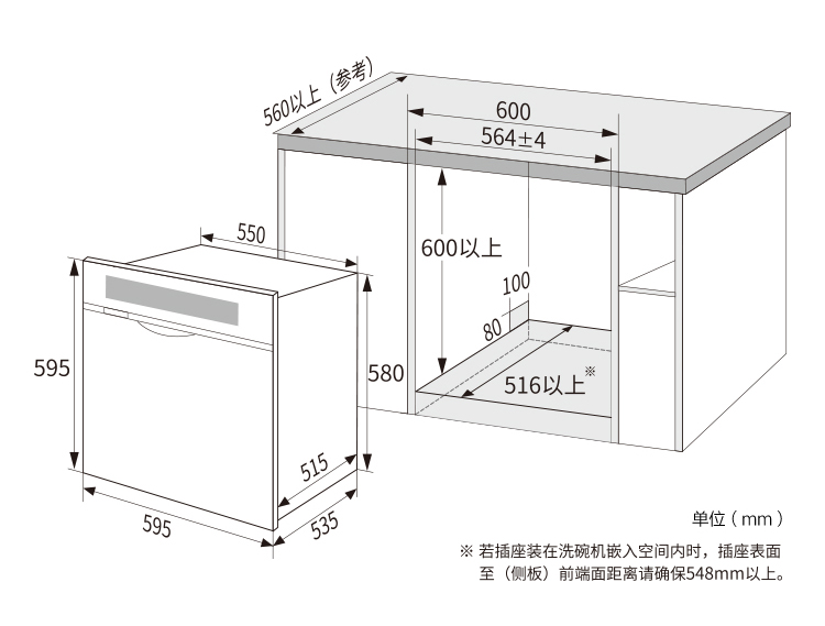 開孔尺寸(mm):長564(±4)×寬516×高600