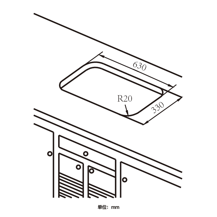 開孔尺寸(mm):長630×寬330 4-R20