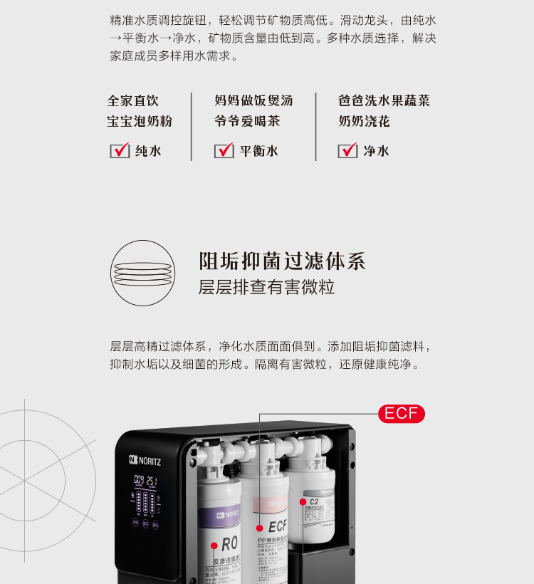 出水水質(zhì):符合《生活飲用水水質(zhì)處理器衛(wèi)生安全與功能評價規(guī)范——反滲透處理裝置》和《生活飲用水水質(zhì)處理器衛(wèi)生與功能評價規(guī)范——一般水質(zhì)處理器》(2001)的要求