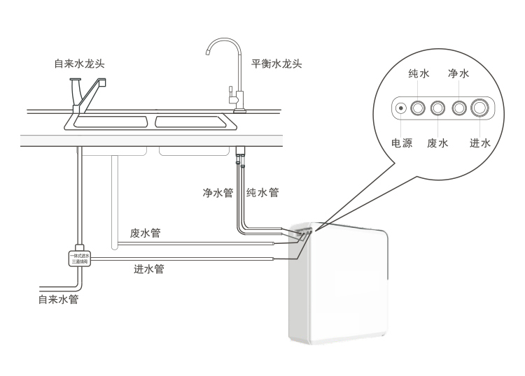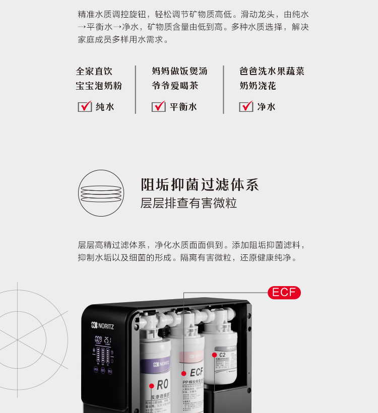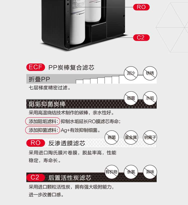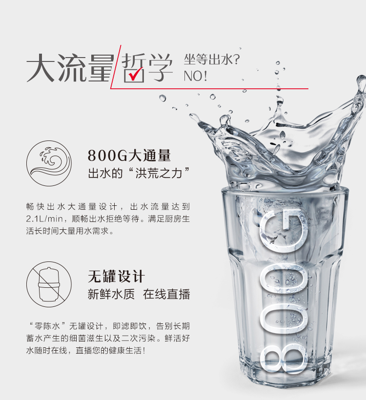 出水水質:符合《生活飲用水水質處理器衛生安全與功能評價規范——反滲透處理裝置》和《生活飲用水水質處理器衛生與功能評價規范——一般水質處理器》(2001)的要求