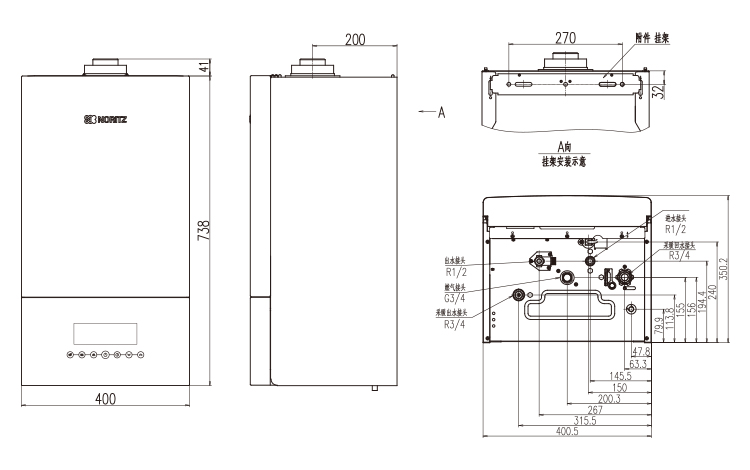 采暖進水出水接口:R3/4”