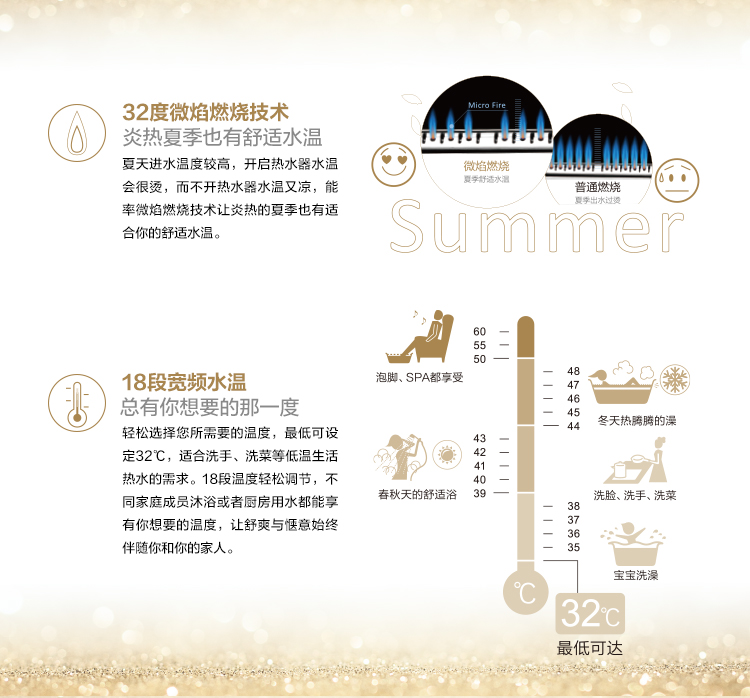 - 32度微焰燃燒技術 炎熱夏季也有舒適水溫