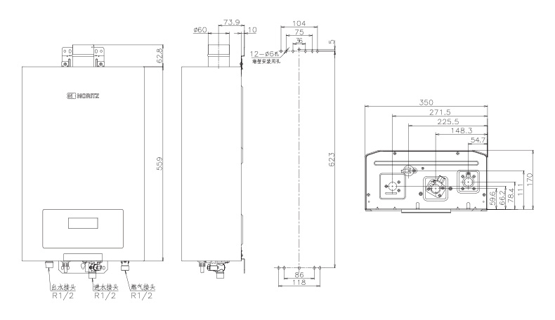 額定熱負荷時產熱水量(Kg/min):13(水溫+25℃上升)