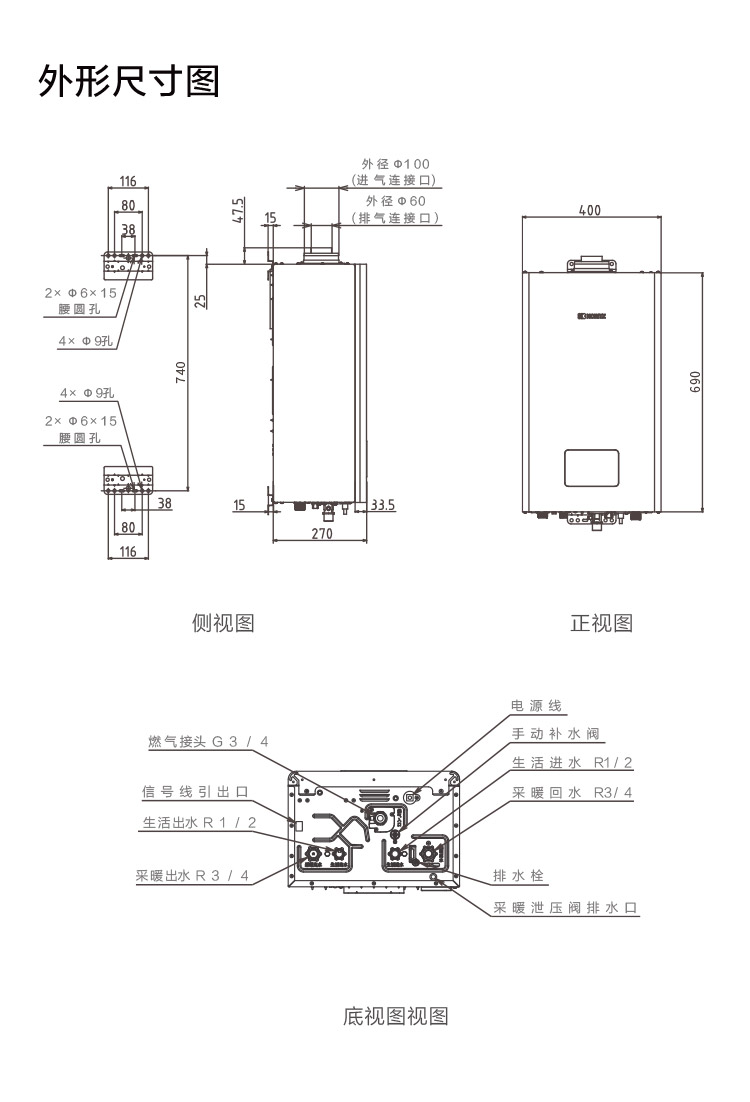 采暖進(jìn)水出水接口:R3/4"