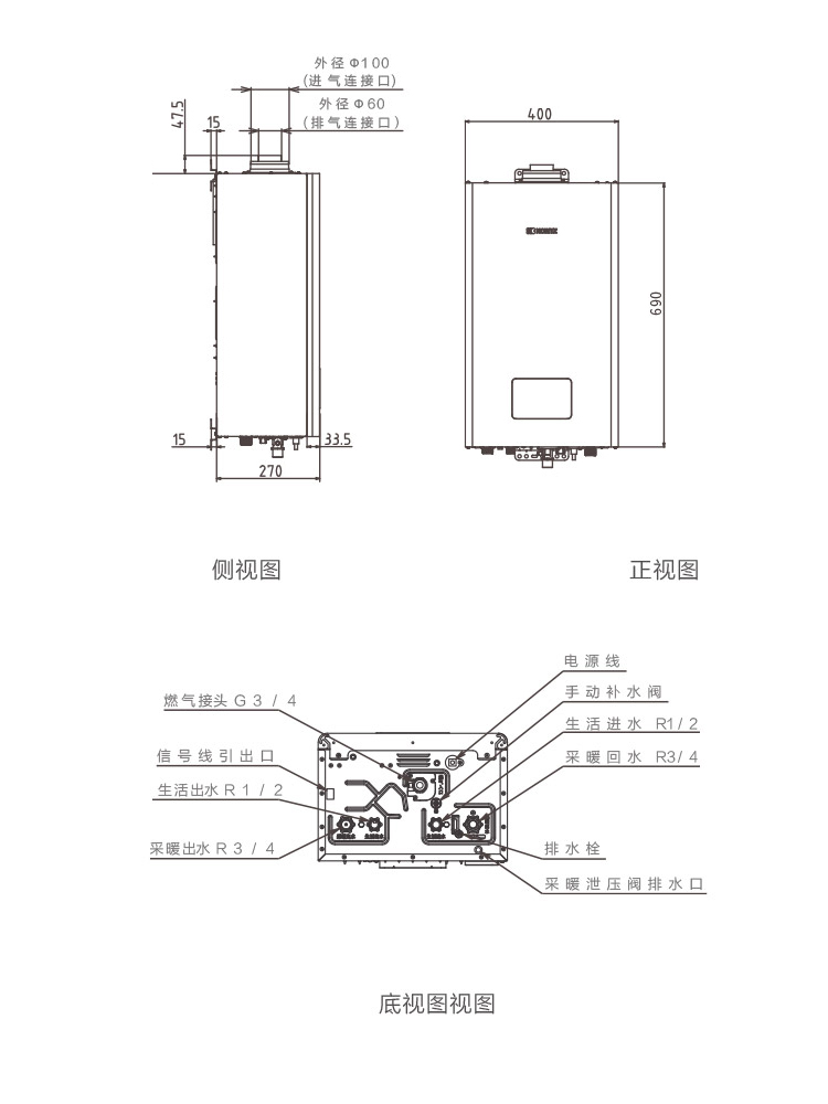 排氣方式:強(qiáng)制給排氣式