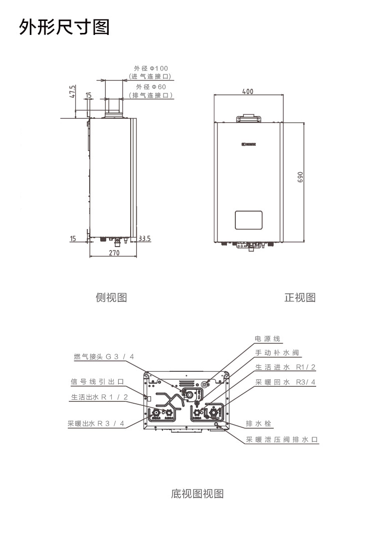 外形尺寸(mm):高690×寬400×深270