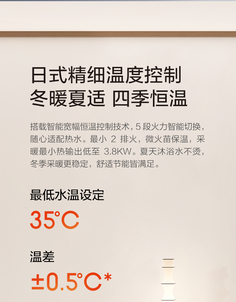 - 恒溫熱水:5段火力切換,35℃最低溫設