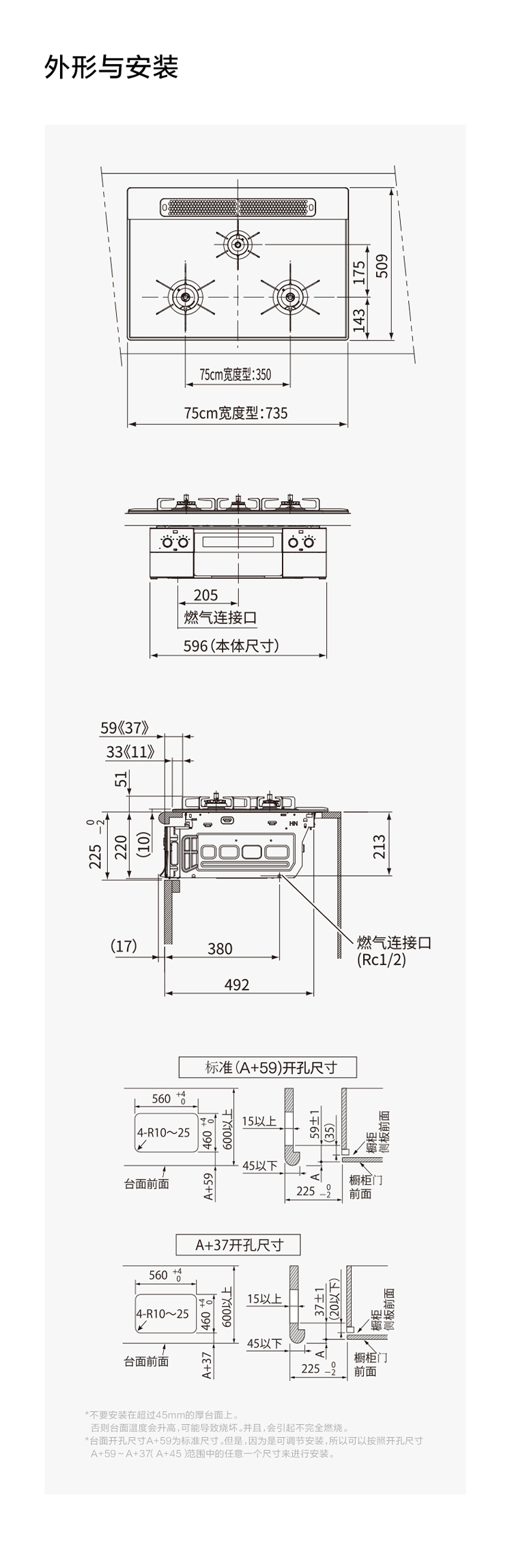 外形尺寸 (mm):高271 × 寬596 × 深492 (面板寬735)