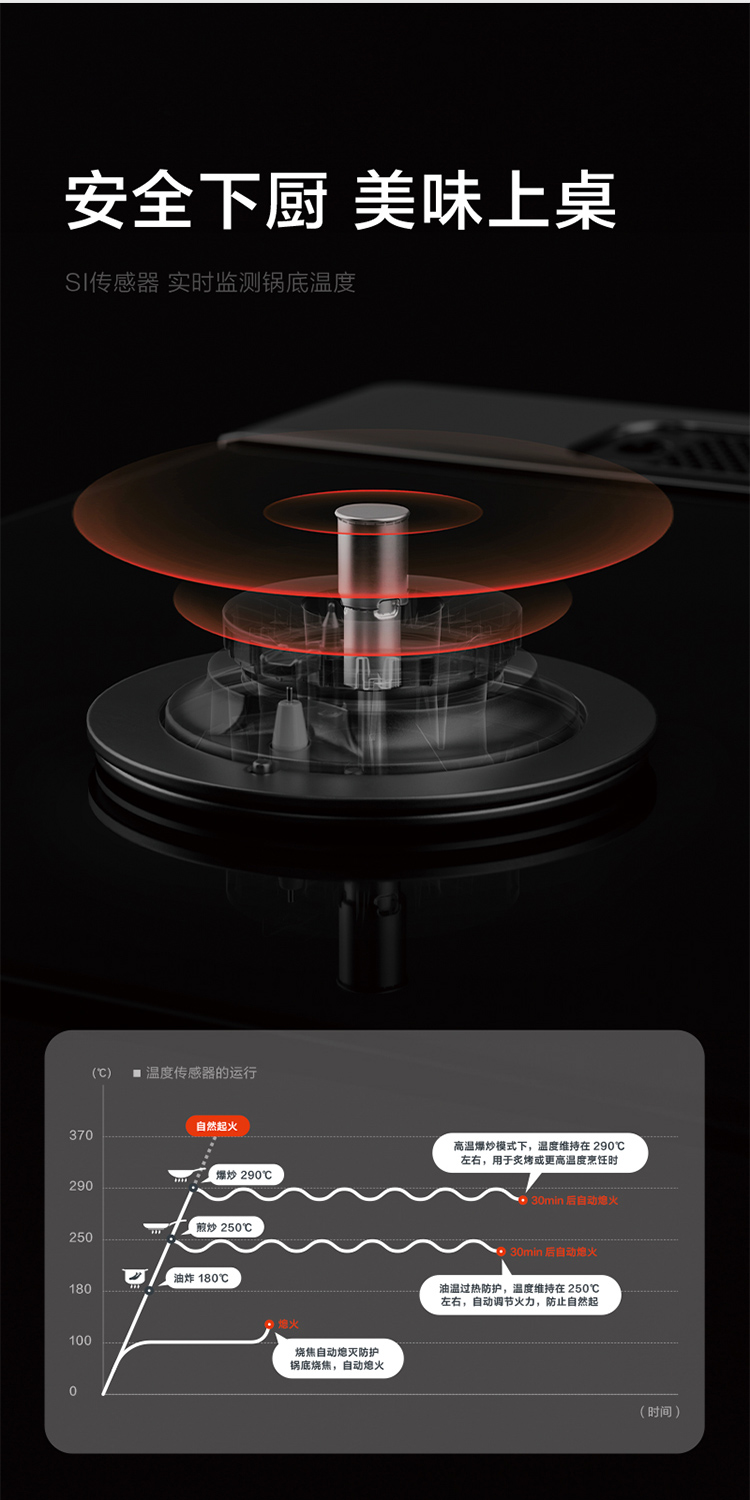 燃氣灶爐頭:油溫過熱防護裝置 / 燃氣灶自動關火保護功能