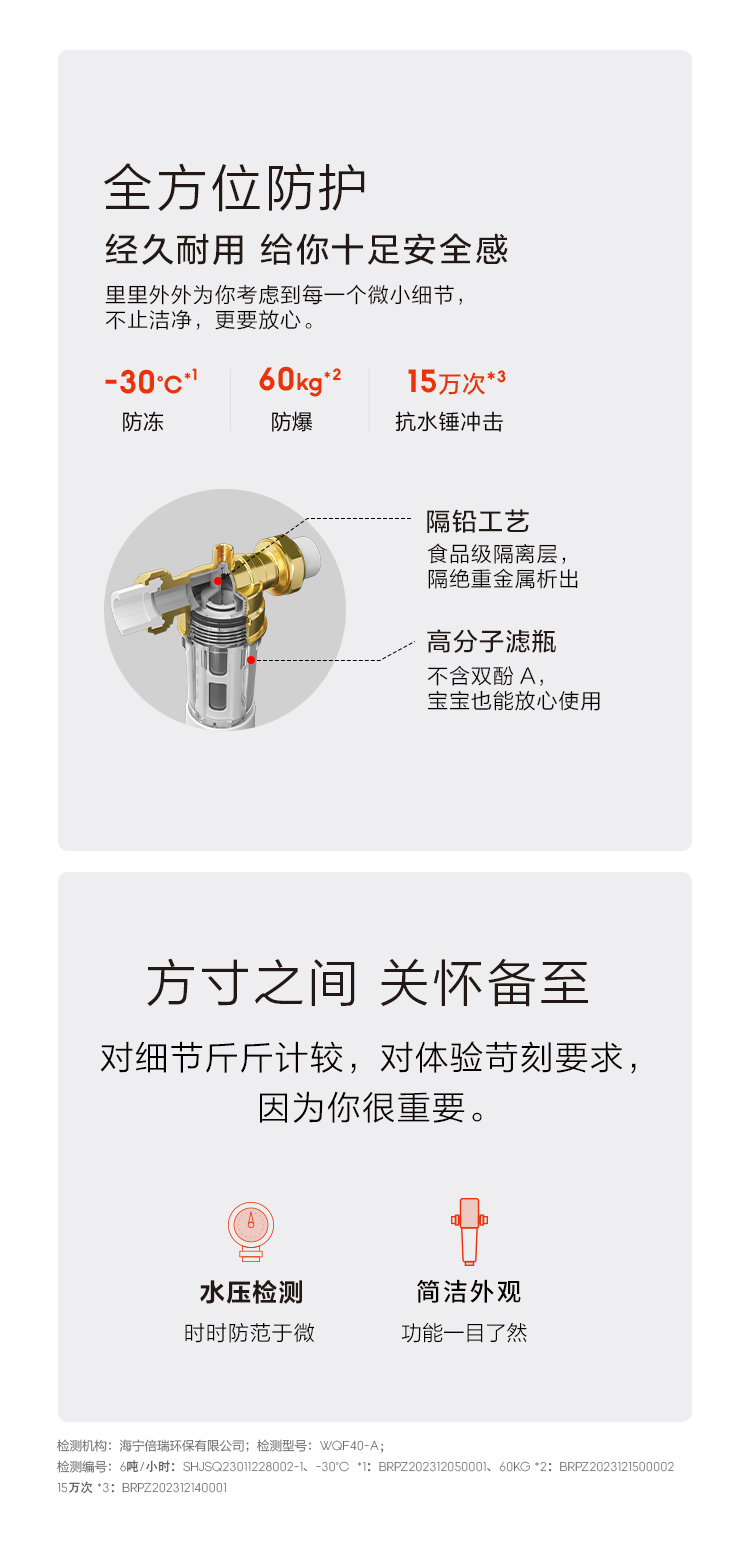 出水水質:符合《生活飲用水水質處理器衛生安全與功能評價規范-一般水質處理器》(2001)的要求。
