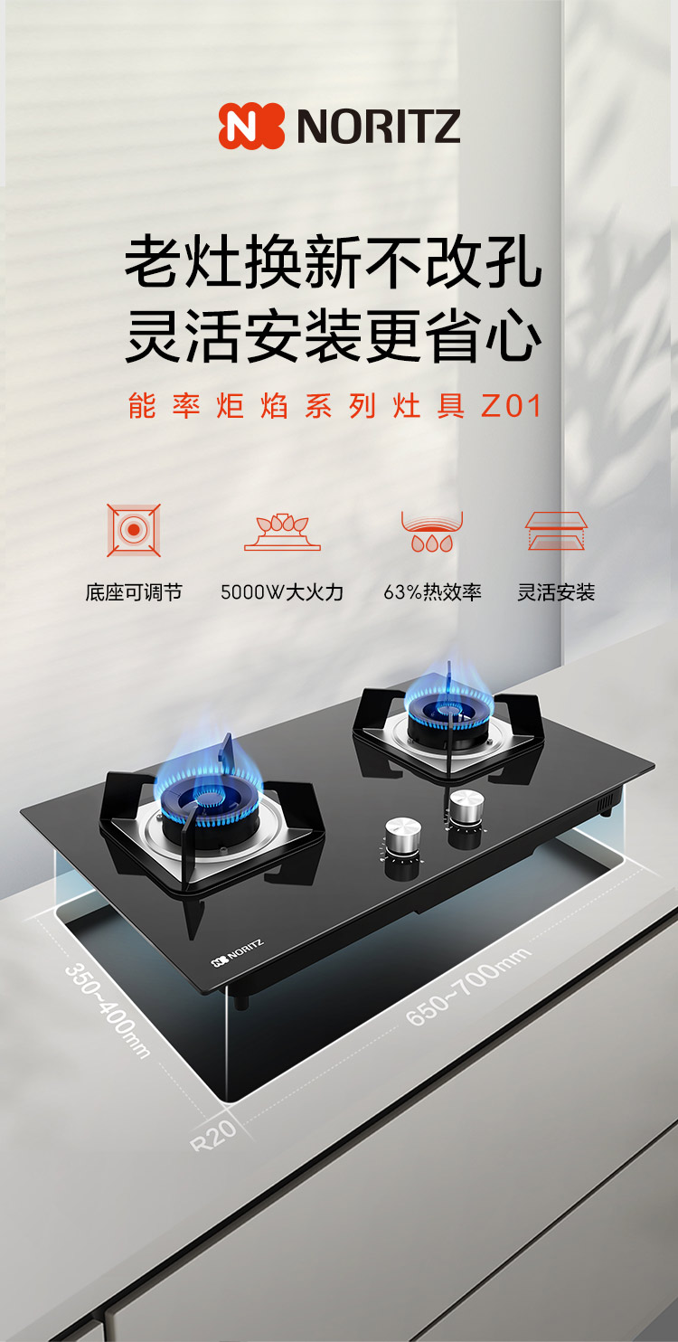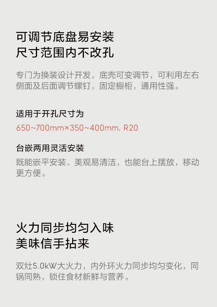 - 雙灶5.0kW大火力,中式爆炒無憂