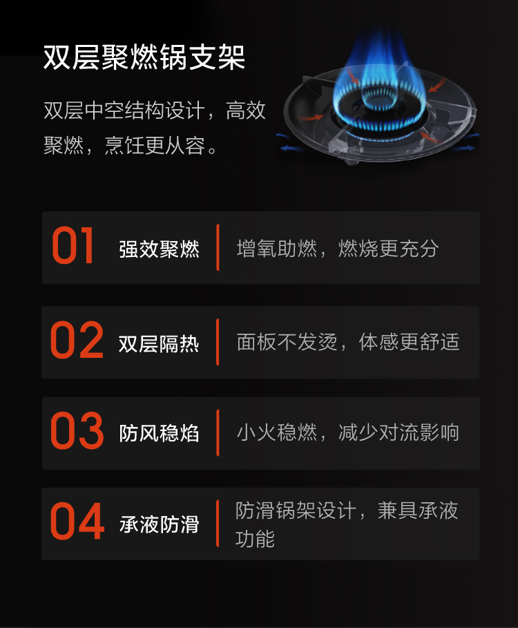- 雙層鍋支架,防風穩(wěn)焰更隔熱