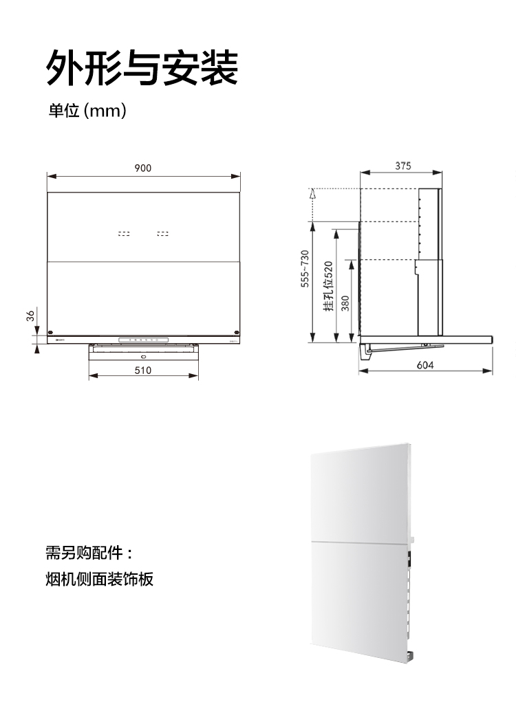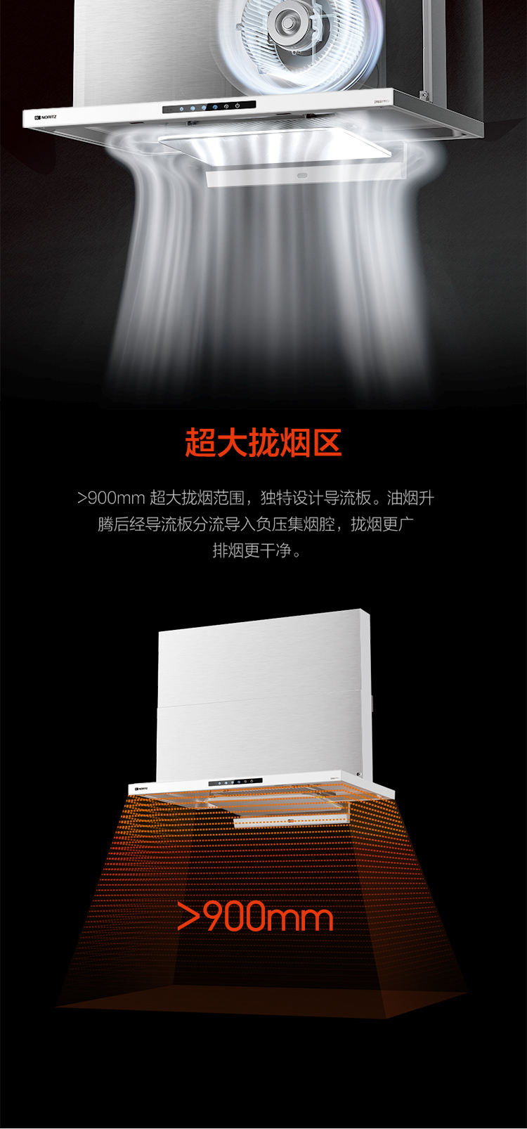 - >900mm超大攏煙區 排煙更干凈
