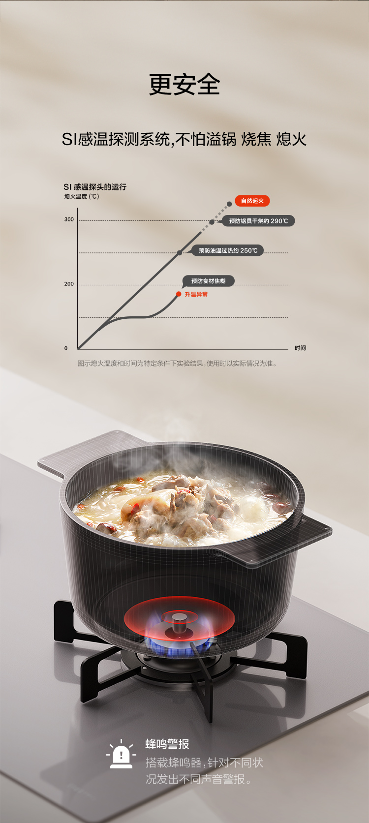 - SI感溫探測系統,不怕溢鍋、燒焦、熄火