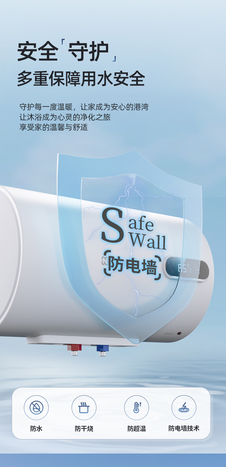 安全防護裝置:超溫保護、水壓過壓保護、防熱水倒流、防凍保護等