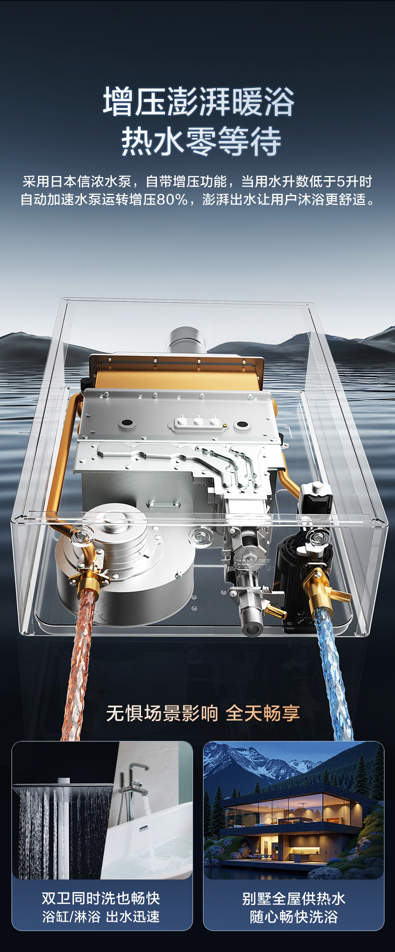 - 全屋零冷水,別墅級增壓大水量