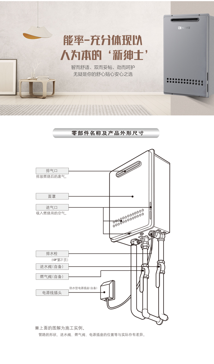 燃氣管:液化石油氣,天然氣使用R1/2;其他氣種使用R3/4