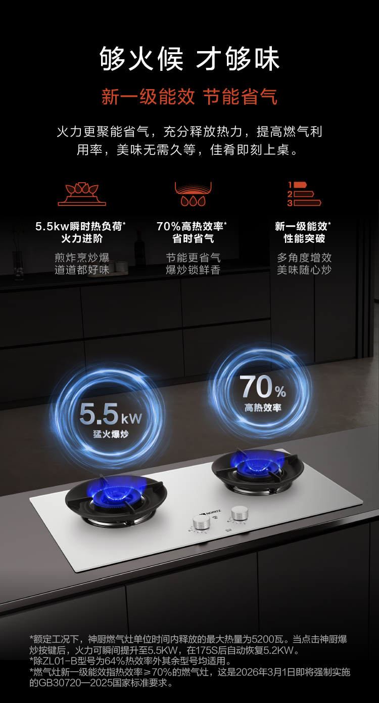 - 神廚猛火炒,最大熱負荷可達5.5KW