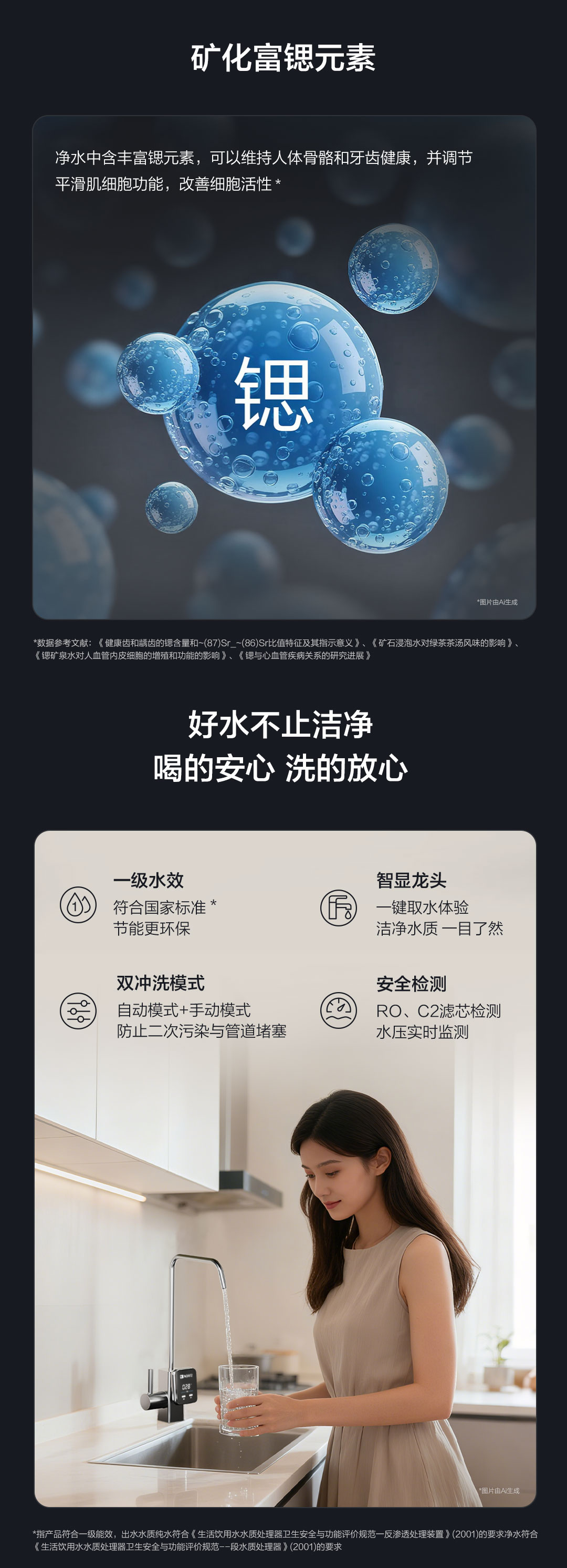 水效等級:符合GB 34914-2021《凈水水效限定值及水效等級》標準的1級要求